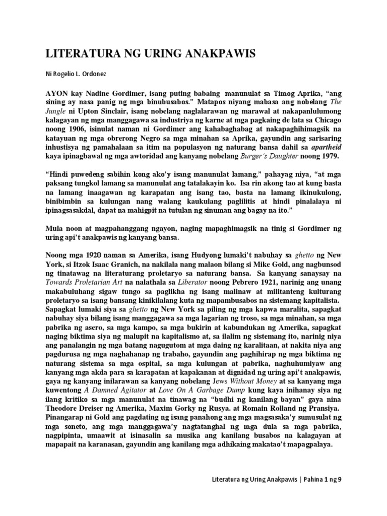 Ang Literatura Ng Lahing Anak Pawis