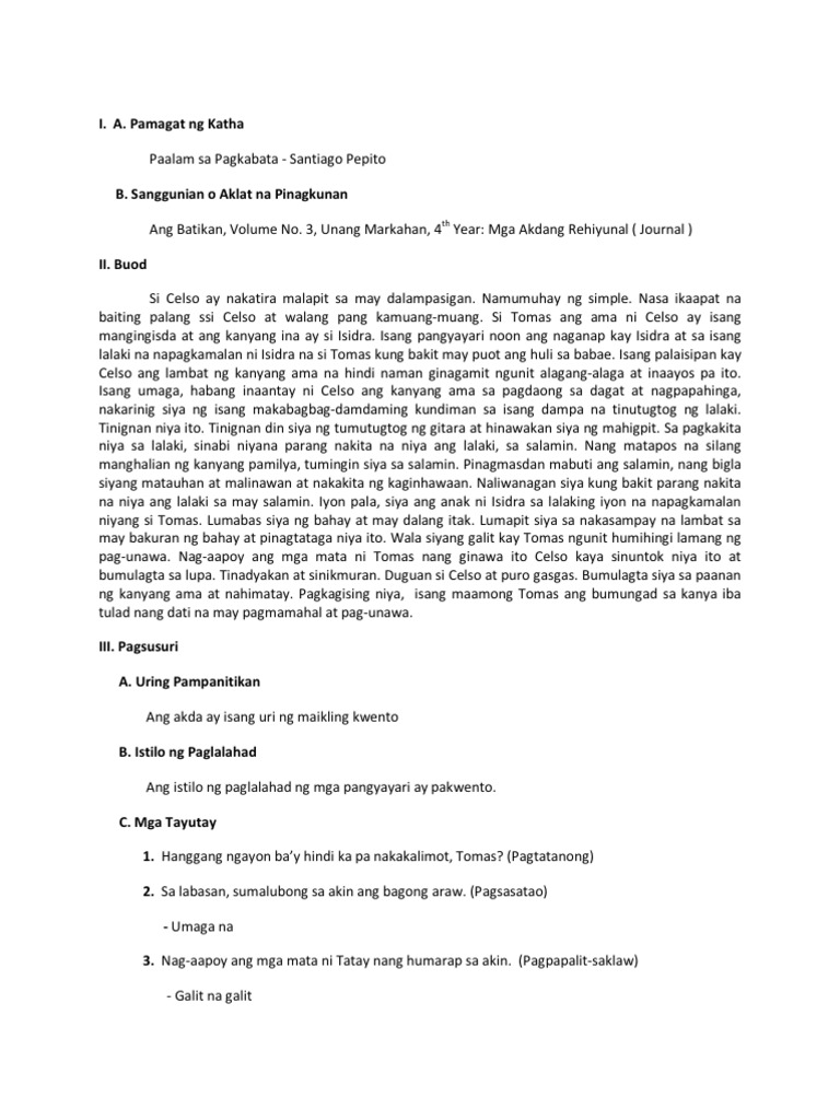 30082020 Maikling kwento pagsusuri sa isang maikling kuwento ulat sa maikling kwento pambata movie search engine at search. 26022017 Pagbabasa walang magaganap na pagsusuri kung walang babasahing akda. August 10 2014 Abstrak - Anumang mga pagbabago na makikita sa mundo ay bunga ng.