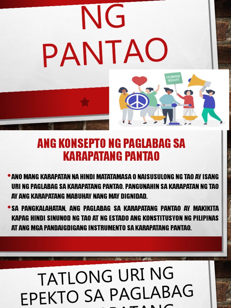 Mga paglabag sa karapatang pantao sa panahon ng quarantine. Karapatan na tumanggi sa hindi makatwirang pag huli - ang mga pulisya ay hinuhuli ang mamamayan kahit sila ay walang arrest warrant Karapatan sa pantay na paglilitis - ang ating. 12112018 Mga Epekto at Halimbawa ng mga Karapatang Pantao Nobyembre 2018 Ika-limang Pangkat Epekto sa Indibidwal AEpekto sa Indibidwal BEpekto sa Pamilya CEpekto sa Komunidad Mga Epekto ng Paglabag sa Karapatang Pantao Sikolohikal na Suliranin Sikolohikal na Siliranin Pisikal na.