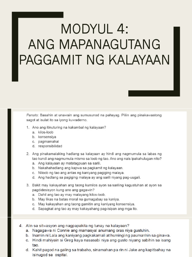 Kilos ay nagpapakita ng mapanagutang pagamit ng isip at kilos-loob. Walang kahit isang pwersa sa sa labas ng desisyon ng. Ibahagi sa iyong katabi ang nilalaman ng.